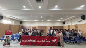 Astra Honda hadir memberikan materi mengenai teknik berkendara yang aman, penggunaan perlengkapan keselamatan, serta pentingnya etika berlalu lintas. Mahasiswa juga diajak memahami bagaimana kebiasaan kecil, seperti mengenakan helm standar dan mematuhi rambu, dapat menyelamatkan nyawa.